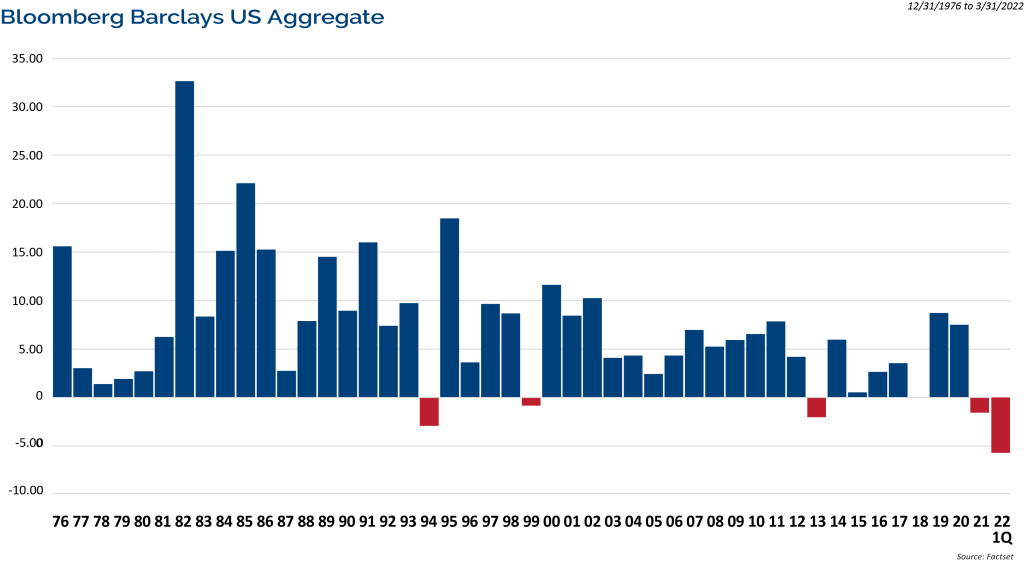 Bonds are boring. They are supposed to be. But every once in a while, bond prices go down. Usually, this occurs when interest rates have moved up. 2021 was one of those years and 2022 has started off that way as well. Last year, the 10-year Treasury went from a yield of 0.93% to 1.52%, creating losses for U.S. Treasuries and smaller losses for investment grade bonds. As a result, the Bloomberg Barclays U.S. Aggregate Bond Index declined by 1.5% in 2021. This was only the 4th negative calendar year for this index since its inception in 1976. High yield bonds, which have the unusual characteristic of performing better in years when interest rates increase, enjoyed a positive return of 5.3% in 2021.